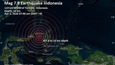 இந்தோனேசியாவில் ஏற்பட்டுள்ள நிலநடுக்கத்தால் இலங்கைக்கு ஆழிப்பேரலை எச்சரிக்கை விடுக்கப்படவில்லை என அனர்த்த முகாமைத்துவ நிலையம் தெரிவித்துள்ளது. இந்தோனேசியாவின் டெர்னேட் (Ternate) கடற்கரைக்கு அப்பால், வட மொலுக்கா கடற்…