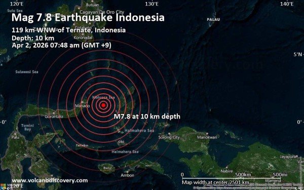 இந்தோனேசியாவின் டெர்னேட் (Ternate) கடற்கரைக்கு அப்பால், வட மொலுக்கா கடற் பகுதியில் 7.8 மெக்னிடியூட் அளவில் நிலநடுக்கம் ஏற்பட்டதையடுத்து, அதனை அண்மித்த நாடுகளுக்கு ஆழிப்பேரலை எச்சரிக்கை விடுக்கப்பட்டிருந்தது.