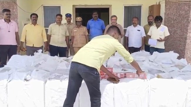 அங்கிருந்த 35 சாக்கு மூட்டைகளைச் சோதனை செய்தபோது, அவற்றில் 7 லட்சம் வெளிநாட்டு சிகரெட்டுகள் இருந்தமை கண்டுபிடிக்கப்பட்டது.