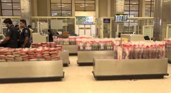 அவர்கள் எடுத்துவந்த பயணப்பொதிக்குள் 378 மதுபான போத்தல்கள் மற்றும் 132 கிலோகிராம் ஏலக்காயை சுங்க அதிகாரிகள் கண்டுபிடித்தனர்.