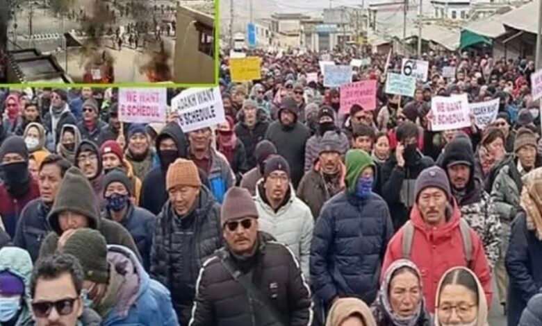 லடாக் யூனியன் பிரதேசத்திற்கு தனி மாநில அந்தஸ்து கோரி நூற்றுக்கணக்கான மக்கள் போராட்டத்தில் ஈடுபட்டு வருகின்ற நிலையில் போரட்டம் வன்முறையாக உருவெடுத்துள்ளது.