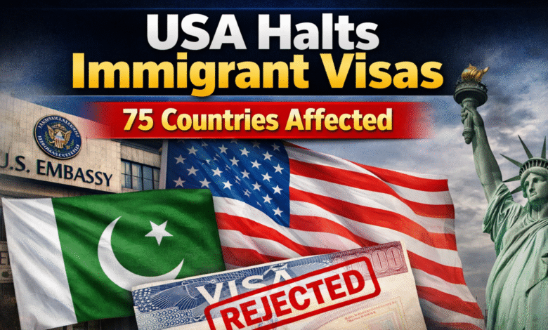 அமெரிக்க அரசு ஜனவரி 21 முதல் 75 நாடுகளைச் சேர்ந்தவர்களுக்கு குடிவரவு விசா வழங்கும் நடைமுறையை நிறுத்தி வைக்கிறது என அந்நாட்டு வெளியுறத்துறை அமைச்சகம் செய்தி வெளியிட்டுள்ளது. விசா பரிசோதனை மற்றும் சரிபார்ப்பு நடைமுறைகள் மறுமதிப்பீடு செய்யப்படும் வரை, விசா விண்ணப்பங்களை நிராகரிக்குமாறு தூதரக அதிகாரிகளுக்கு அறிவுறுத்தப்பட்டுள்ளது. இதற்கு என குறிப்பிட்ட காலக்கெடு ஏதும் குறிப்பிடப்படவில்லை.