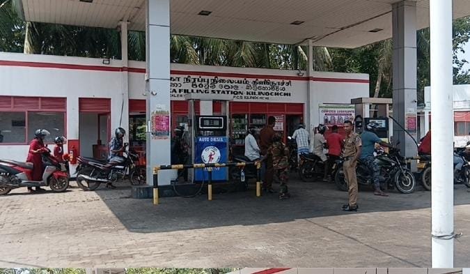 தற்போது கிளிநொச்சி மாவட்டத்தின் நகர பகுதிகளில் உள்ள எரிபொருள் நிரப்பு நிலையங்களில் வாகனங்களுக்கு மாத்திரமே எரிபொருள் வழங்கப்பட்டு வருகின்றது.கொள்கலனில் எரிபொருள் வழங்கப்படவில்லை.